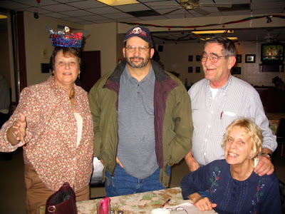Jack of the Assassins had Monday off, so he brought his team and some of Billy Warmth's Thursday night players along with him (extra special guest star Alan was just along for the photo shoot). Getting their Scottish poets mixed up cost them the game, but they did come in third. The defending Amoebas were second and Half of One, Six Dozen of Another placed first. I got rid of a ton of unwanted prizes, since it was Bottom of the Bag night. Fritz suggested that we keep going with the unwanted theme, so next week I encourage you to bring any unwanted Christmas presents that you received and we'll recycle them into the Trashbag of Deelite (Al Gore would be so proud of us!)